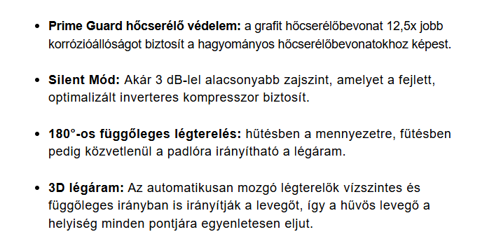 A Midea LUN-09-SP Solunar Inverteres Split klíma fontos tulajdonságai: