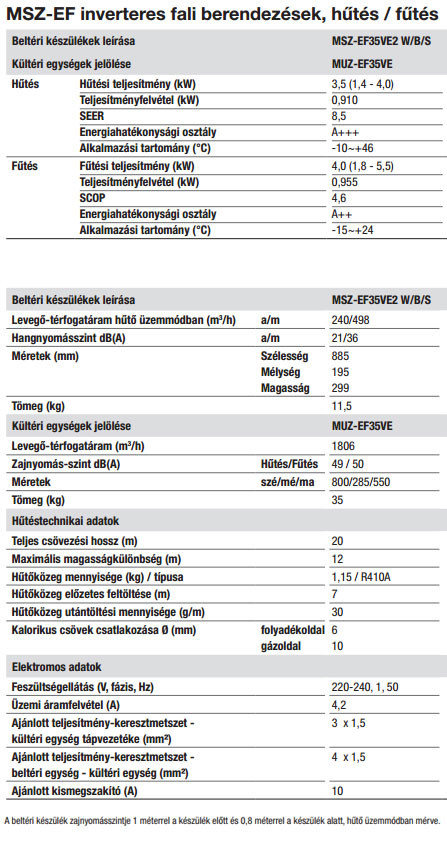 - Hűtő teljesítmény : 3,5 (1,4-4,0) kW