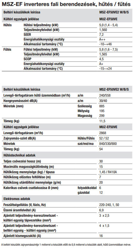 - Hűtő teljesítmény : 5,0 (1,4-5,4) kW